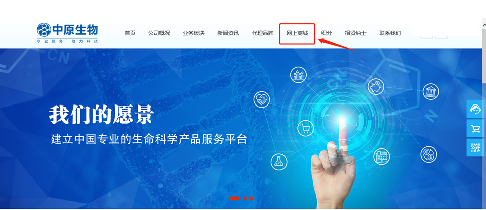 中原公司一直以“推动生命科学事业,服务于全人类健康”为使命!为客户打造优质高效,安全可靠的生命科学产品公共服务平台。面对日新月异的全球生物产业热点需求,中原公司不断提高服务水平,充分发挥自身优势,服务理念从“传统模式”向“互联网+模式”升级。中原公司网上商城于2019年5月1日正式上线,商城地址:  http://shop.sinozhongyuan.com/