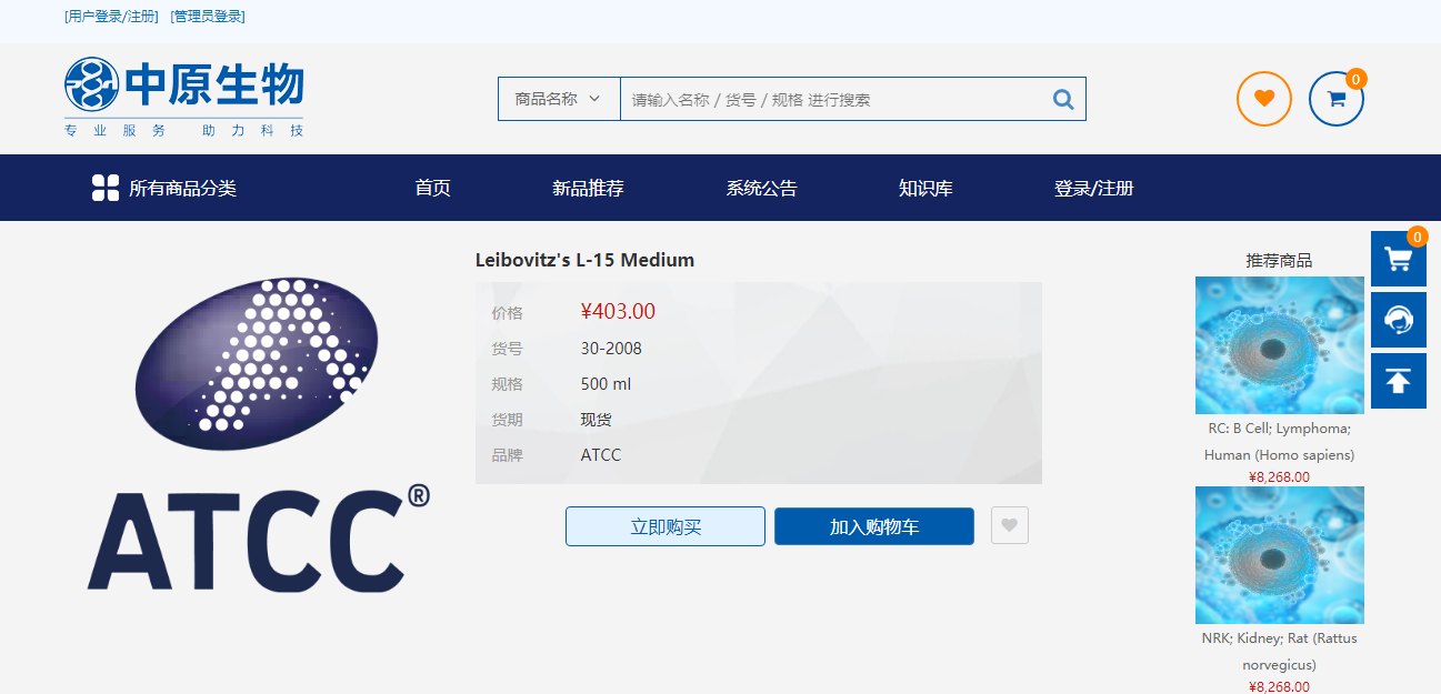 订购ATCC产品,登陆中原公司网上商城,实时掌握现货库存情况,为您提供愉悦的网上购物体验。