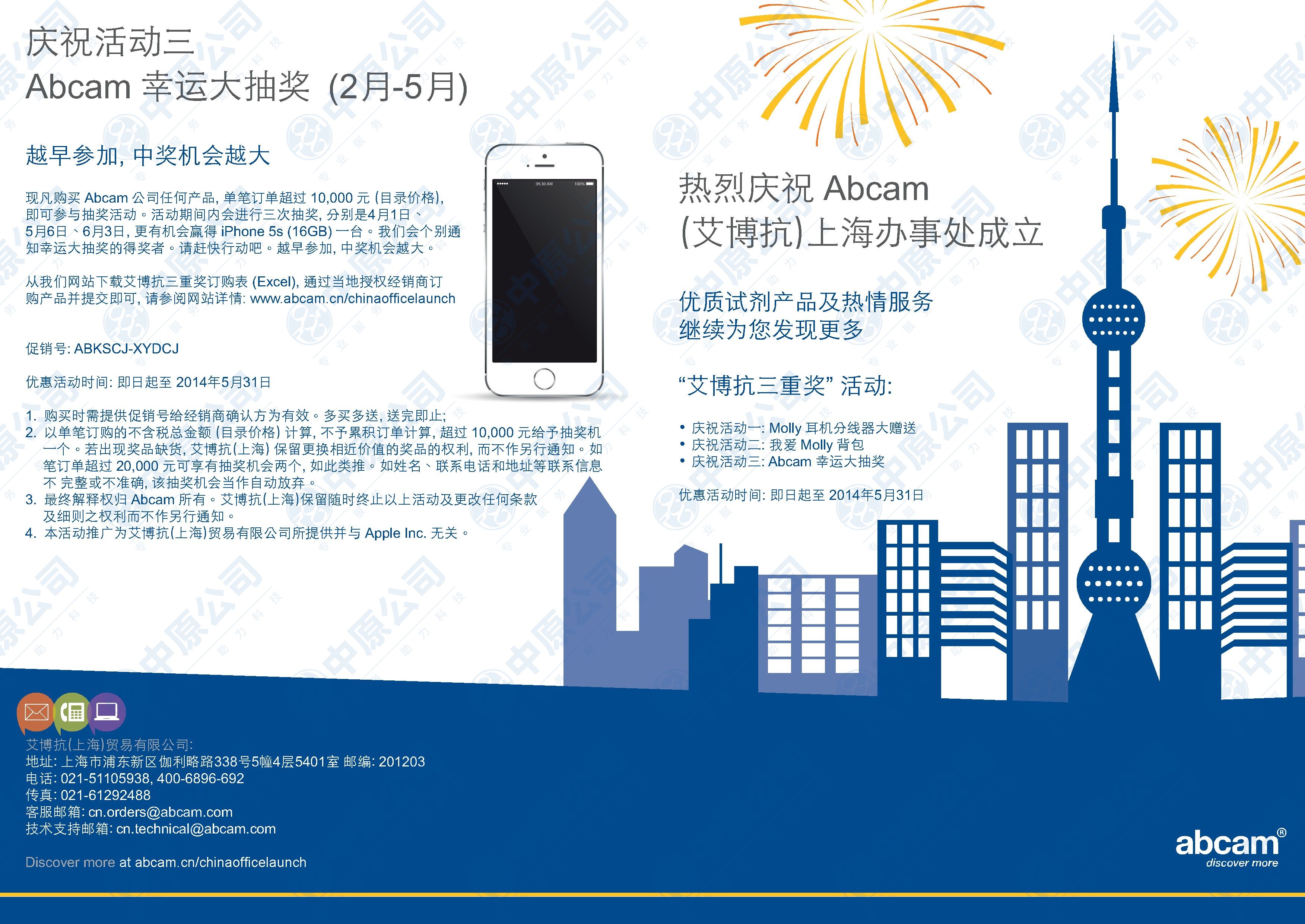 庆祝Abcam上海办成立 幸运大抽奖!2014-02-26 12:37:00.0