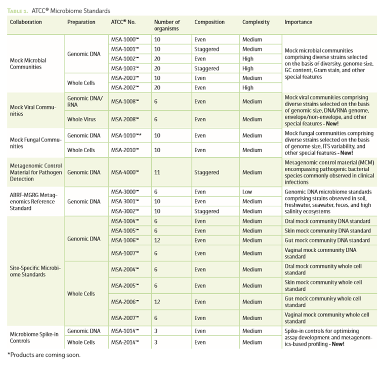 微生物组学研究需要对很多种微生物组合做相应的研究,其复杂性使得检测标准化变得很有挑战性,为此ATCC开发了各种分析优化和质控的微生物组学标准品。