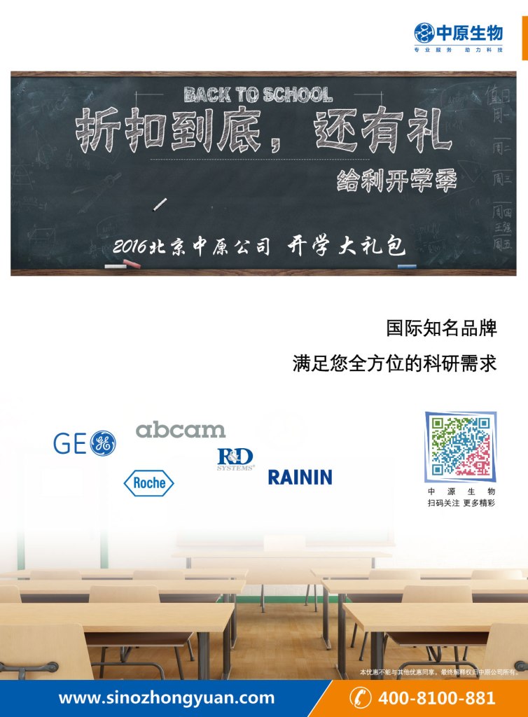 新鲜出炉的中原公司2016开学大礼包,GE,Roche,abcam,R&D,Rainin等国际知名品牌,满足您全方位的科研需求!