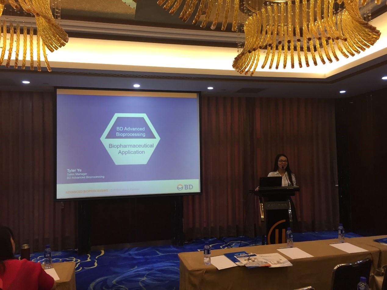 百泰生物,北京步长,成大天和,凯因,康乐卫士,民海,三元基因,北京生物制品研究所,泰德制药,天广实,天坛生物,正旦国际,智飞绿竹,甘李药业,金普诺安,精益泰翔,天津天士力,中科生物等多家生物制药领先企业及科研单位参加了本次研讨会。会议由中原公司工业部经理何耀强主持,中原公司业务总经理李景华到场并致词。Sartorius公司产品应用专家赵伟,BD高级生物工艺产品北区销售主管张佩瑜,Sciex 技术专家高铁,ThermoFisher 公司Gibco产品技术专家王颖,Filtrox公司营销总监何群,TELSTAR公司中国区销售经理康瑜,中原公司首席科学家朱希灿等先后做了精彩的主题演讲。