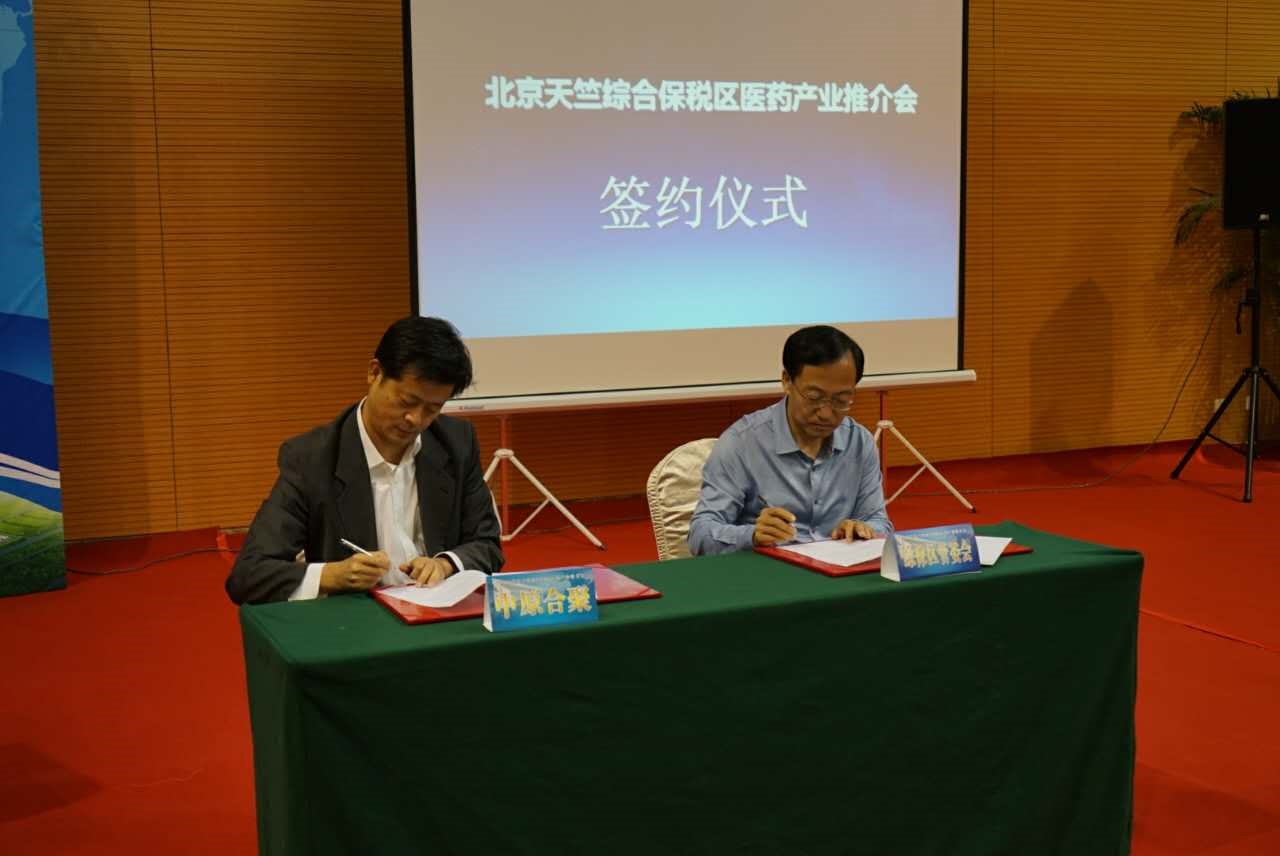 2016年10月12日上午11时,北京中原合聚经贸有限公司(以下简称“中原公司”)与北京天竺综保区管委会(以下简称“综保区管委会”)战略合作协议签约仪式暨北京天竺综合保税区国际医药产业推介会在顺义中家鑫园温泉酒店隆重举行。