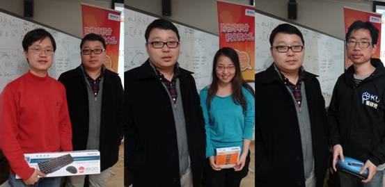 中原公司研究生交流论坛的一个重要环节,就是最激动人心的抽奖环节,除了每一位到场的老师和同学都能获得疯狂的小鸟一只外,我们还现场抽取了迷你键鼠,无线音乐耳机和无线键鼠套装三个大奖,恭喜如下获得大奖的三位幸运儿: