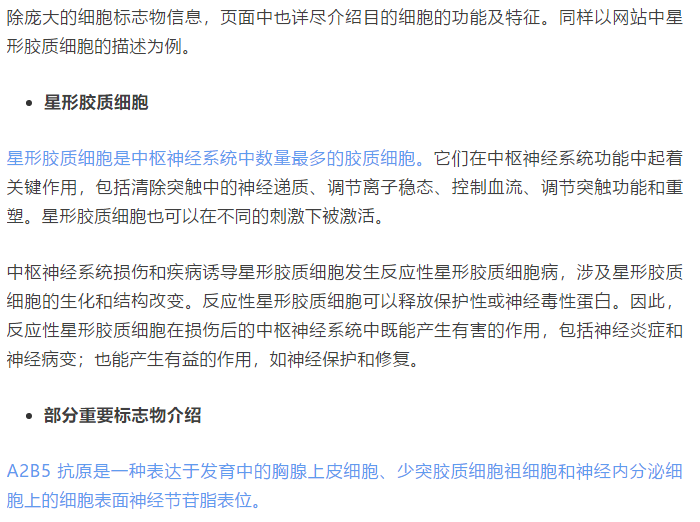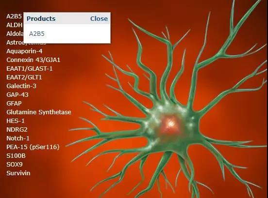 2. 点击进入星形胶质细胞,显示标志物