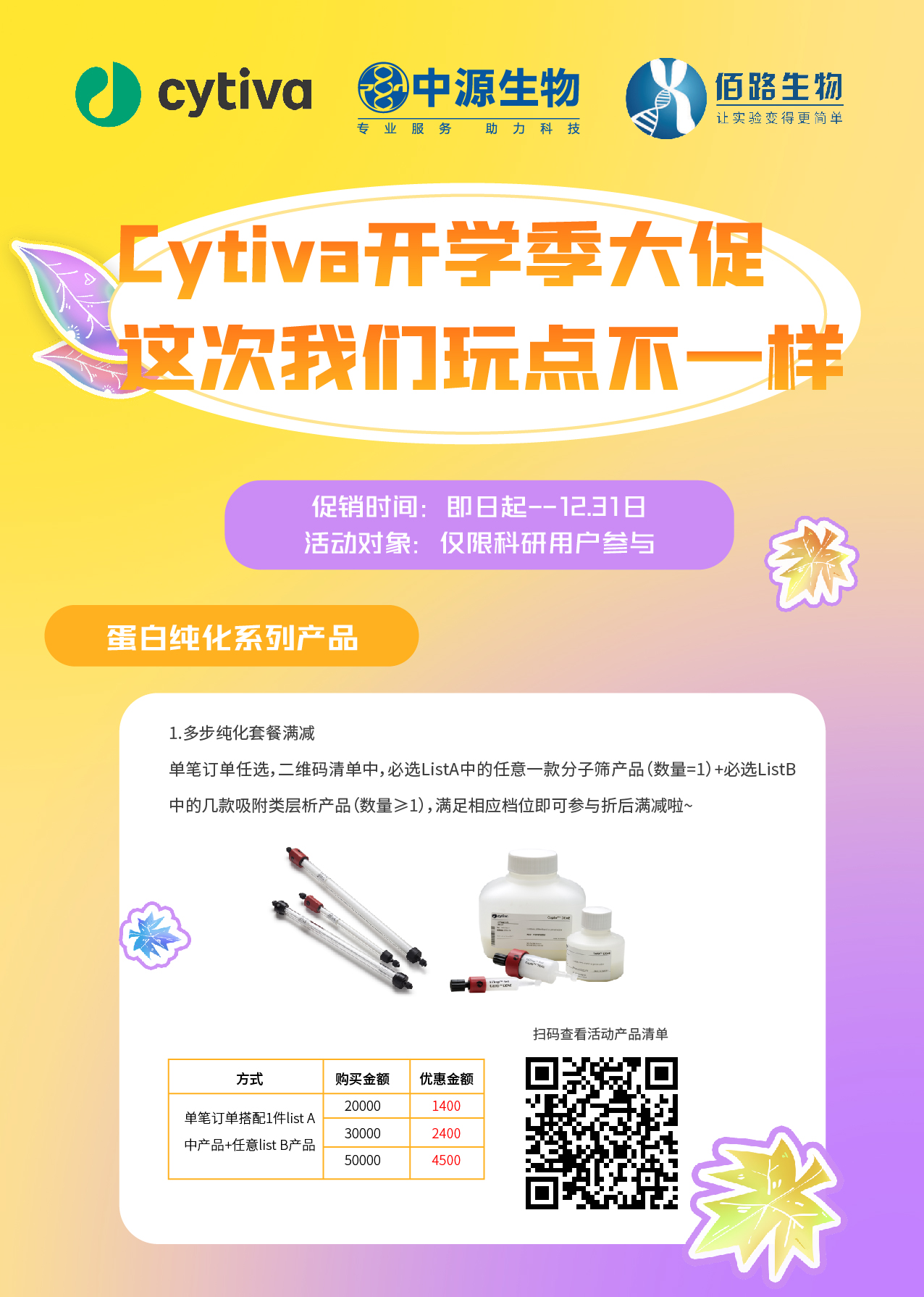 Cytiva秋季开学季促销活动开始啦!