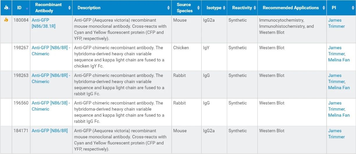 那么Addgene主要的重组抗体资源都有哪些呢?